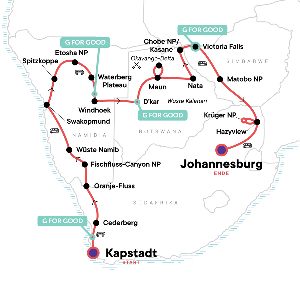 Spend 28 days cruising through Africa in a Lando (overland adventure vehicle) visiting towering sand dunes, deep canyons carved through time, and Etosha, Kruger, and Matobo National Parks for some unforgettable wildlife safari drives. Listen to the thundering roar of Victoria Falls, enjoy traditional dinner and dance, and campouts under a blanket of stars. Think action, adventure, and amazing wildlife encounters in a super continent of diverse ecosystems waiting to welcome you with open arms.